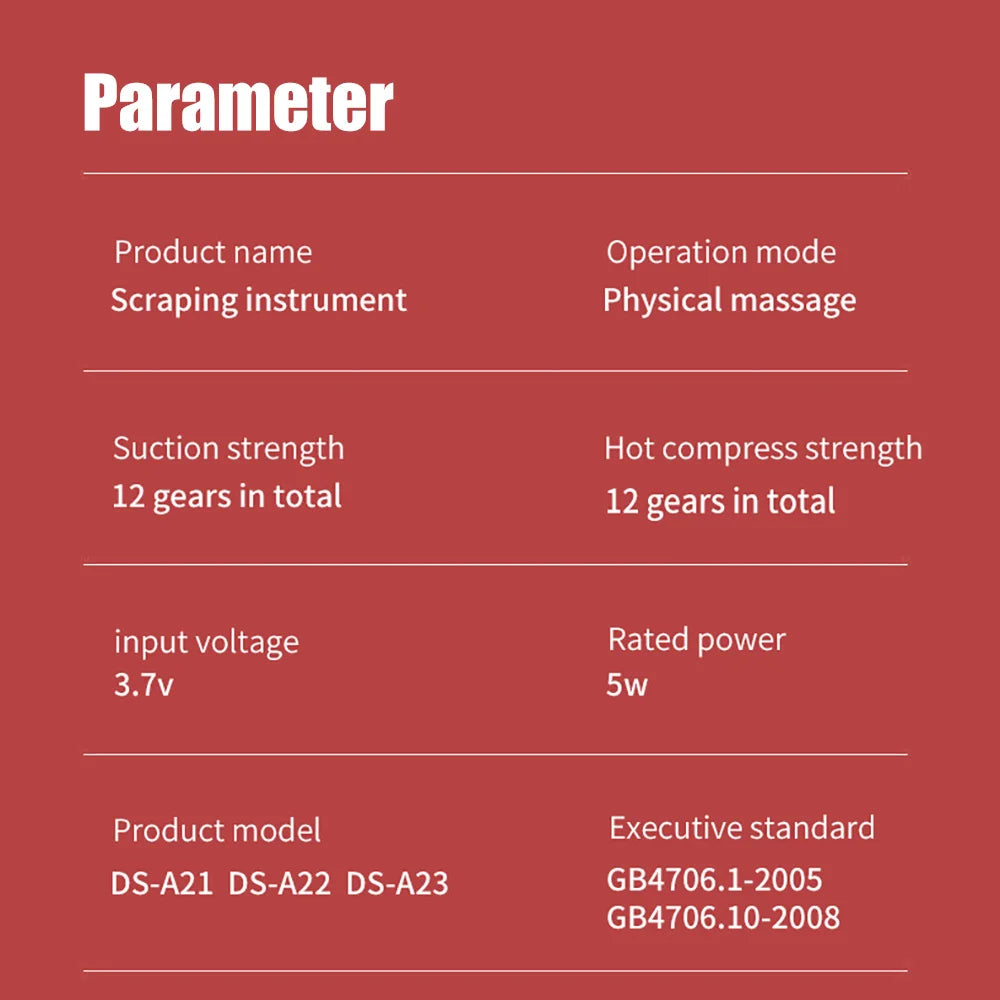 - Use Cases: Neck, arms, legs, back, abdomen, lower and upper limbs; cupping, massage, weight loss support